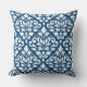 Scroll Damask Lg Ptn White on Dk Blue Throw Pillow