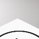 Scroll and leaf damask off-set (bottom left) design in black detail on a white background in a modern style art print with circle top right with initial to personalize.