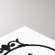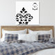 Scroll and leaf damask off-set (bottom left) design in black detail on a white background in a modern style art print with ornate circle top right with initial to personalize.