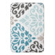 Scroll and leaf offset damask art surface pattern design in teals and browns on a white background.