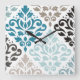 Scroll Damask Offset Ptn Art Teals Browns White Square Wall Clock