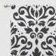 Scroll and leaf damask surface pattern design in black detail on a white background.