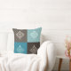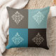 Scroll Damask Pattern Squares Teals Browns White Throw Pillow