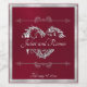 This design features a burgundy background embellished with silver ribbon borders, silver scroll design and silver monogram heart with the bride & groom's name and date of event in elegant script. Also available with different colored backgrounds for your wedding theme colors. (Ribbon is simulated in the artwork). Designed to coordinate with the "Romantic Scroll Hearts & Calligraphy" Wedding Collection. To change details, click «Personalize». To move the text or change the text size, font, or color click «Click to customize further»