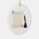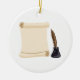 Lightweight, smooth, pure white ornament with nice sheen. Perfect size to be seen from across the room ... and to attract closer inspection! Price was great for ordering enough for the whole family! Clear, bold black design just as requested. Matches the order exactly. Just so nice!