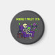 Stick it where your sanity used to be. This magnet features a skeleton deep in digital denial, lounging in a purple armchair with glowing phone in hand, while a ghost floats by asking the real question: “STILL SCROLLING?” Complete with a steaming mug labeled “99% Scrolling, 1% Awareness,” this design is perfect for anyone who doom-scrolls through dinner, deadlines, or domestic chaos. Add it to your fridge, locker, or workspace and let the judgmental ghost do the talking.