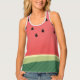Scrumptious tank top featuring a watermelon design in pink and green.