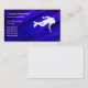Scuba diving business cards with image of a scuba diver in a diving suit and blue water like background with text layout you can personalize to make this work for your business. Designed for any business or occupation related to scuba diving lessons, equipment or supplies.