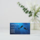 Scuba diving business cards with image of an underwater scene wnd scuba divers in a diving suit and gear. Customuze the text layout to make this work for your business. Designed for any business or occupation related to scuba diving lessons, equipment, supplies or gear.