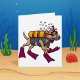 This design is a scuba diving dog. The dog has all the suba gear on. This scuba diving dog design looks great on this Greeting Cards