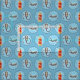 A fun scuba diving pattern with blue background, yellow scuba tank, scuba flag and pressure gauge.