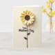 Designed with a soft cream background, this card features a large golden-yellow flower at the top that looks gently layered, like carefully cut paper. The petals overlap in rounded tiers, and the warm shading makes them feel close enough to touch, like a quiet gesture of care ❤️. A deep brown circular center anchors the bloom, with a slim brown stem reaching down toward two simple leaf shapes. Beneath the flower, the text “happy Mother’s Day” sits centered in dark brown, with raised-looking edges that catch the light. The layout feels calm and affectionate, as if the flower is leaning in with a tender, friendly presence 🌼. Soft, diffuse lighting creates long, delicate shadows from each petal and from the letters, adding depth without clutter. The brown stem and leaves echo the flower’s center, and the petals fade from bright yellow to slightly darker tones along their edges.