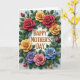 Designed with a bright floral wreath circling the center, this card celebrates Mother’s Day with a gentle, affectionate look ❤️. Large, full-petaled blooms that resemble roses and wide garden flowers wrap around the middle, as if leaning in together like close friends. The background stays white with a faint texture, letting the colors stand out without feeling loud. Deep red, sunny yellow, soft pink, lavender, and sky blue flowers mix with layered green leaves that curve and overlap in a cozy ring. Smaller star-shaped blue flowers and tiny buds are tucked between the larger blossoms, adding little moments of tenderness 🌼. In the center, the words “HAPPY MOTHER’S DAY” sit prominently in a warm golden tone, neatly spaced and easy to read. Soft, even lighting creates gentle shadows along the petals and leaves, giving the wreath a lightly sculpted, dimensional look. The wreath forms an oval frame around the gold text, with the biggest flowers clustered at the top-left and bottom-right and smaller accents filling the gaps.