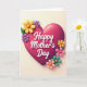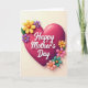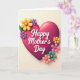 This greeting card features a large, rounded heart that looks softly cushioned, shaded in a smooth gradient from fuchsia to deep magenta for a cozy, affectionate feel ❤️. Curled around the heart are stylized flowers in sunny yellow, gentle purple, soft peach, lively pink, and calm teal green, giving the scene the look of a caring bouquet offered with a tender smile 🌼. Each blossom has a contrasting, button-like center that draws the eye, like little points of attention meant just for her. Slender green leaves tuck between the petals, and the slight shading makes the flowers and heart appear raised from the surface. The message “Happy Mother’s Day” sits centered across the heart in bright white lettering with a faint shadow to help it stand out. Behind everything, a creamy beige background with soft lighting keeps the focus on the heart and floral arrangement. The flowers cluster mainly along the upper-left and lower-right edges of the heart, with gentle shadows falling onto the beige backdrop.