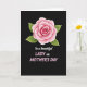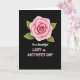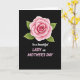The front design shows a stylized flower set high on a deep black background, drawing your eye upward like a small romantic gesture left in the dark. The bloom is shaded in soft rose and rich fuchsia, with many layered petals that fade from pale pink edges into a tightly curled, deeper center, creating a plush, dimensional look. Two emerald-green leaves sit on either side, angled like they’re gently cradling the flower, adding a quiet, caring balance ❤️. Below the flower, the phrase “To a beautiful,” appears in flowing white lettering, placed just above the main line of text. Under that, “LADY on MOTHER’S DAY” is written in a simple, modern all-caps style, colored in soft pastel pink that echoes the lighter petal tones. The spacing keeps the message centered and easy to read, with the black backdrop making every color feel brighter and more intimate 🌼. The flower remains the brightest element, with the green leaves framing it while the pink text sits neatly beneath on the dark field.