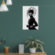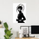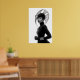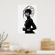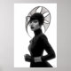 Make a striking statement with this captivating black and white art print, a true masterpiece of avant-garde fashion and artistic expression. This compelling frontal portrait features a woman of intense allure, crowned with an extraordinary, sculptural black hat that spreads outward with intricate, flowing lines and a subtle mesh texture, creating a mesmerizing silhouette. Dressed in a sleek black turtleneck with long sleeves and elegant leather gloves, her minimalist attire provides a sophisticated canvas for the dramatic headwear and shimmering silver bracelets. Her pale skin, stark black lips, and piercing gaze create a mesmerizing contrast against her dark ensemble and the pristine white background, emphasizing her powerful and direct presence. With a confident and poised stance, this artwork embodies a fierce, mysterious, and undeniably chic elegance. Perfect for modern living spaces, fashion studios, or any decor seeking a touch of unique sophistication, bold artistry, and a truly unforgettable visual narrative.