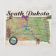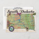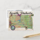 South Dakota state map featuring the state symbol, bird, mammal, tree, fish, insect, and flower. A description and Mt. Rushmore are on the back of postcard.