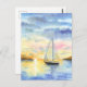 Sea at sunset. A cute yacht leaves the bay and goes to sea. The watercolor illustration was drawn and scanned. Watercolor Landscape made in the open air in 2024.