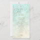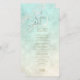 A watercolor texture in the soft shades of sea and sand is the background for marine elements such as starfish and shells that are enhanced with waves of sea foam to create the pieces of this wedding suite. The wedding menu card shown here features all of the above plus a template to easily add your own menu selections, initials and wedding date. Search ID837 to see all the coordinating pieces in this set.