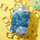 Colorful blue, sea green, teal and white abstract fantasy design of sea waves with foam.