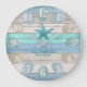 Sea Glass and Beach Wood Nautical - Blue Teal Large Clock