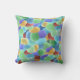 This colorful summer outdoor pillow features a pattern of jewel-toned sea glass in shades of blue, aqua, green, purple, yellow, and red.