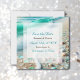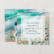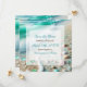 Beautiful coastal wedding Save the Date cards with ocean waves, blue teal and green sea glass on the sand.
