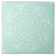 This white mandala sits on a light blue-green background. The colors are serene and creative. Part of the Dagrewi Mandala Collection.