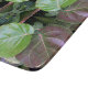 The original pattern by HomeWare on this Cutting Board, in natural shades of greens, muted purples and a hint of light blue, was made from an original photograph of sea grapes growing along the beach. The photo is a closeup showing two of the almost round leaves, one of which is still a bright yellow-green, and the other is becoming a reddish purple as the winter season approaches.