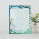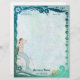 Aqua and blue sets the tone for this lovely textured letterhead. Border has floral accents with curling ocean wave and leaping tropical fish. This fantasy version features a pretty Mermaid grooming her long dark hair while sitting on a rock with a starfish. Version with no mermaid available in my store.