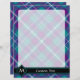 Sea green, purple and blue tartan design. Seamless pattern. Custom text and monogram.