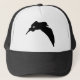 Painting of a sea gull in black silhouette form is printed on hats.