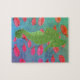 NaivGreen sea horse and pink fishes, ocean life art painting puzzle.