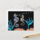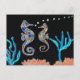 Graphic illustration of seahorses in the colorful ocean. Brighten up the day with these decorative, sea life theme postcards.