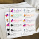 Shaped return address stickers with tropical flowers and sea life designs. Colorful labels will shape to your text. Each label has an image on the left side. Hibiscus flowers, dolphin, octopus, and bird of paradise flowers are the images with colored, printed text. Use three or four lines for the address, which will print the same on all labels. Shown on a 6 inch sheet size. If you want larger labels, choose a larger sheet size.