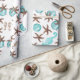 White Christmas gift wrap with tropical sea life theme. Brown starfish / sea stars, sea horses, and aqua blue ornaments pattern on this quality roll of wrapping paper.