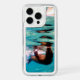 A Sealion showing off swimming just below the surface of the water. I took this photo in the Galapagos where the sea lions are known to interact with people.