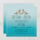 Sea Lions Teal Blue Modern Wedding Invitation