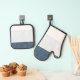 Sea Navy Blue White Stripes Oven Mitt & Pot Holder Set