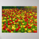 An attractive photo of red and yellow tulips back-lit by the sun in Gorsedd Gardens, Cardiff, Wales