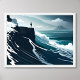 sea painting big wave storm dark night cliff beach poster