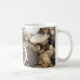 Photograph of small seashells and smooth stones in a pile on a white background. Add your own text to this neutral-colored background of seashells and pebbles.