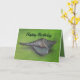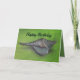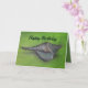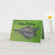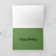 pretty watercolor painting of a blue seashell on a bright green background with the text happy birthday in dark blue makes this beach life ocean themed birthday greeting card.
