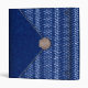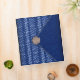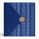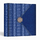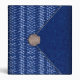 With a mood of the seaside and summers at the Cape. the digital collage on this all purpose binder is definitely casual chic. Done in the style of a clutch bag, in marine blue and white, the flap of the purse is a textured dark blue with a white edge. The rest of the bag is blue with white to light blue shapes like water droplets in a zigzag pattern. A sea shell completes the picture, acting as a closure on the point of the flap. The shell is a scallop shell in shades of warm beige and light brown. The design is repeated on the back cover, and the spine is the blue and white water droplet pattern.
