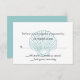Lovely wedding response RSVP card done in white, with graphics of an aquamarine lined sea shell, in the background. Customize the text to suit your needs. Matching wedding products available, see links below.