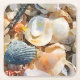 Sea Shells and Driftwood on beach sand Square Paper Coaster