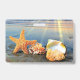Sea shells and starfish on beach badge