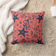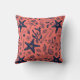 Hand - drawn pattern made of underwater creatures and seaweeds on living coral color background.