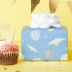 Featuring playful starfish, striped seashells, and soft ocean bubbles on a breezy blue background,