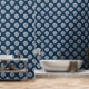 A great deep blue wallpaper with white vintage seashells is perfect for a beach house, bathroom or any room that needs a beachy feel.